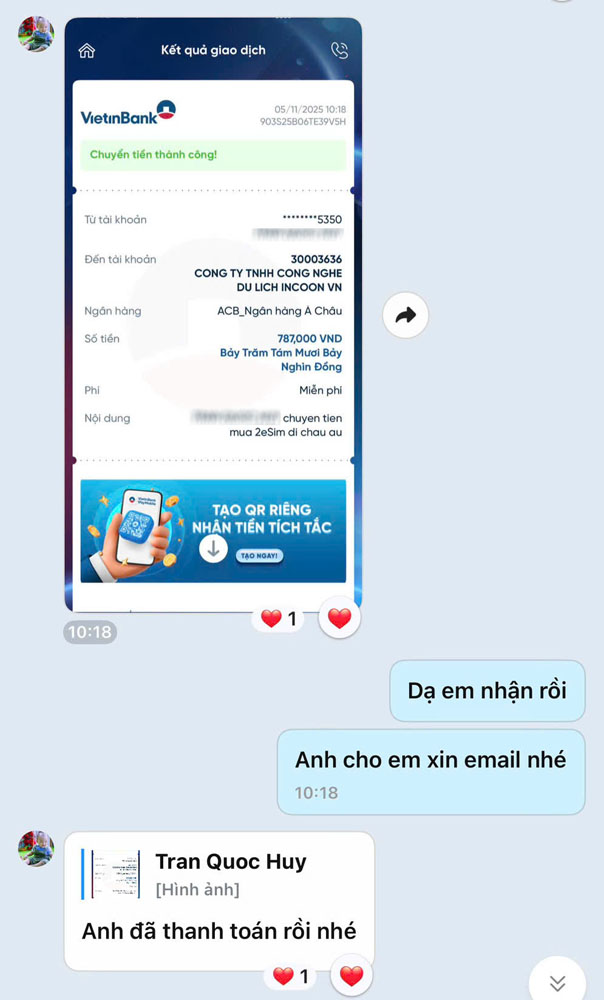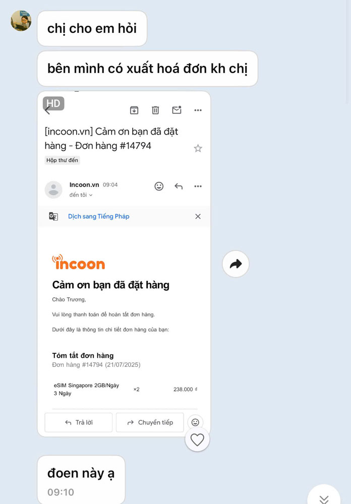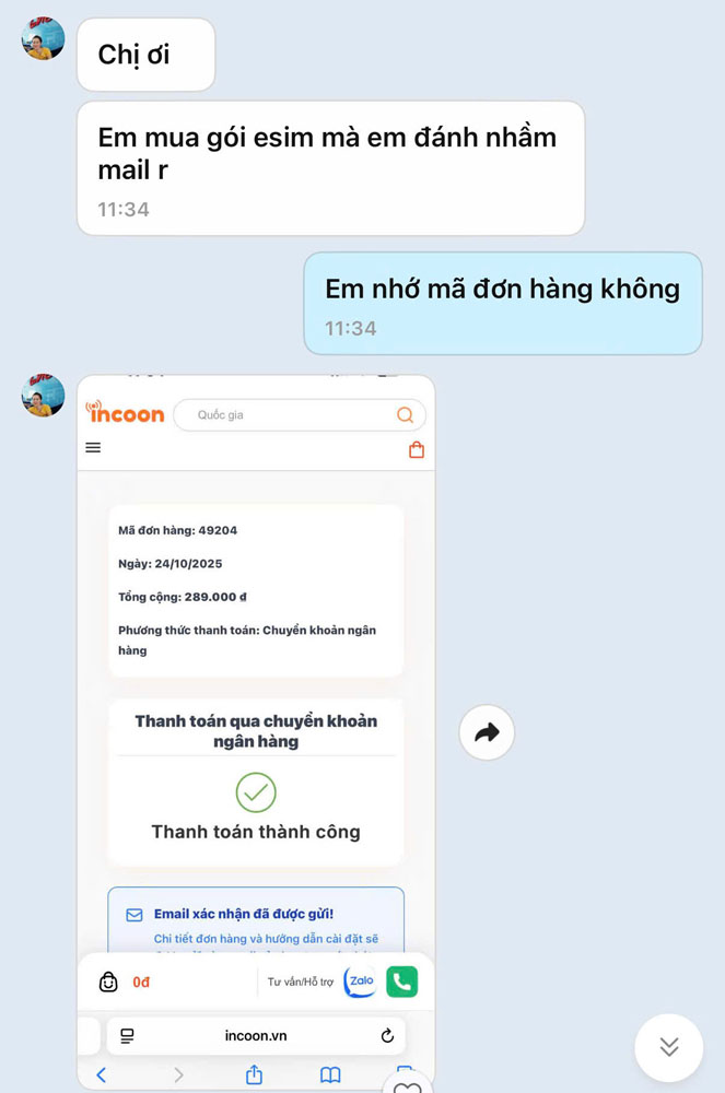 Nếu bạn có câu hỏi hay trục trặc trong quá trình mua và sử dụng eSIM của Incoon thì hãy liên hệ với chúng tôi. Incoon hỗ trợ qua tin nhắn online 24/7.